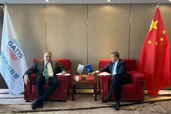 On December 1, 2025, the President of the Global Alliance for Trade in Services (GATIS), Jiang Zengwei, met with Michael Hahn — a renowned scholar of international economic law — in Beijing.